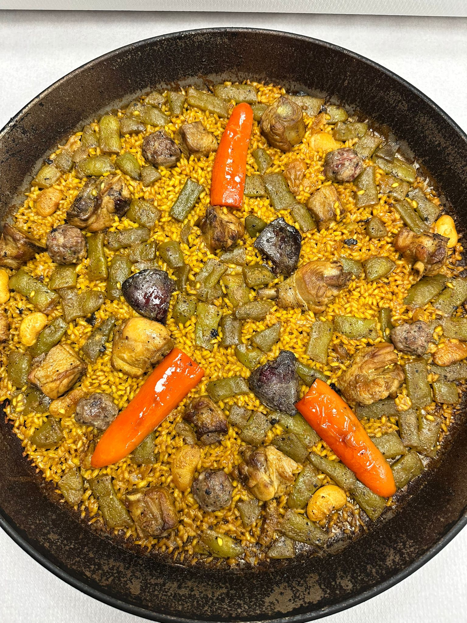 Nuestra paella valenciana tradicional está hecha como mandan los cánones: con pollo, costillas, garrofó y ese sabor a tradición que enamora. Cocinada al momento, con ingredientes de aquí y con el punto perfecto.